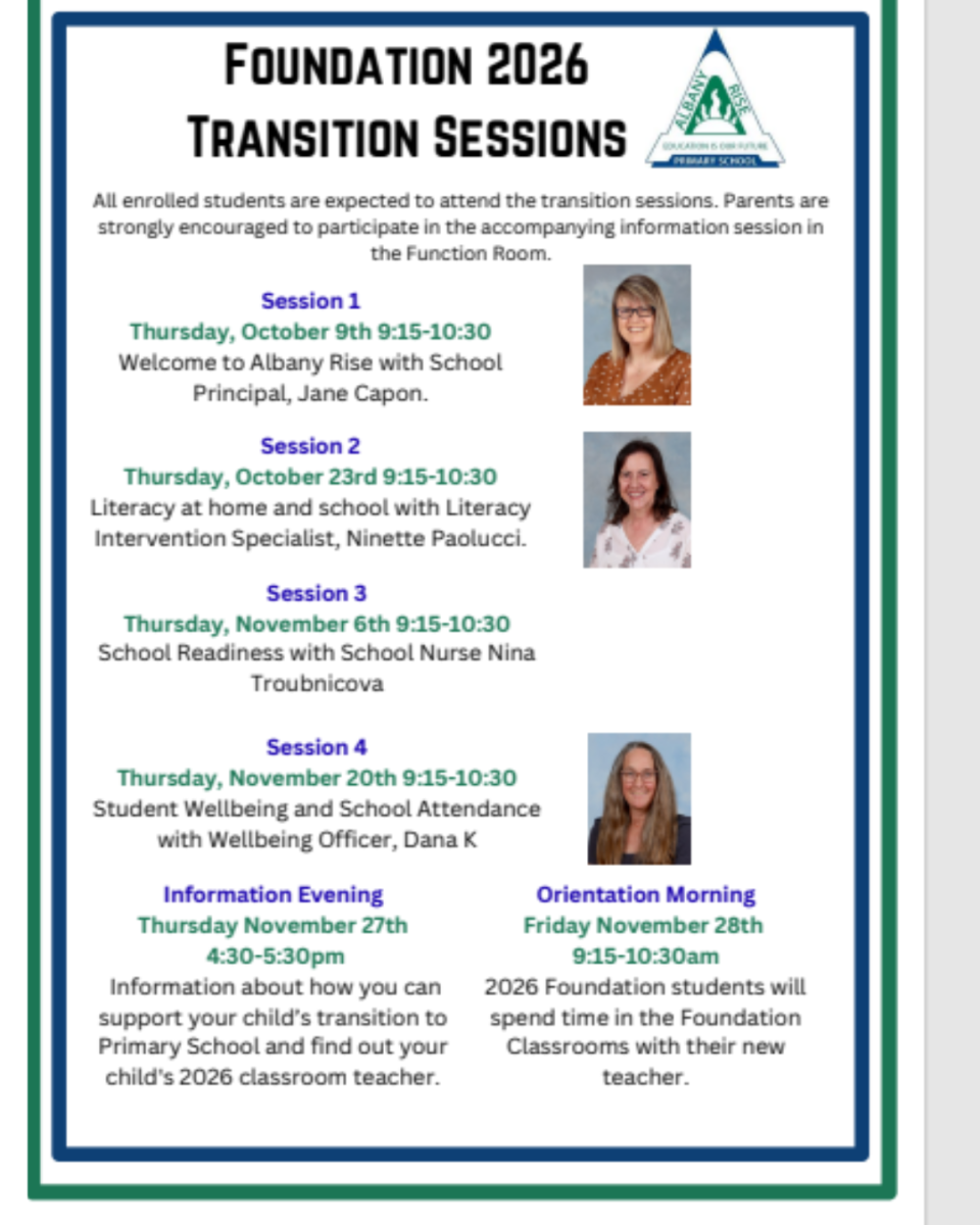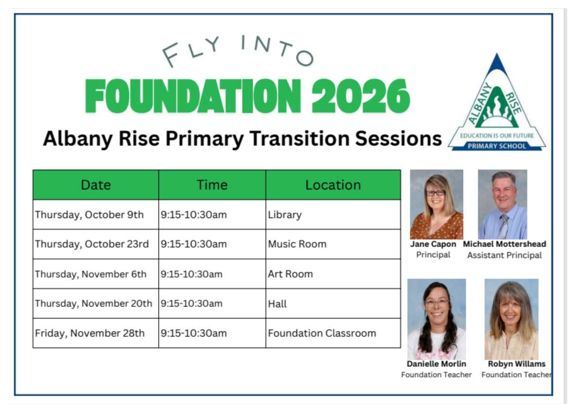 At Albany Rise Primary School, we offer an extensive Transition program for your child. We believe, the more comfortable your child is with our school the easier the transition from Pre-School to School will be. For more information on transitioning from Early Childhood to Foundation please click here .